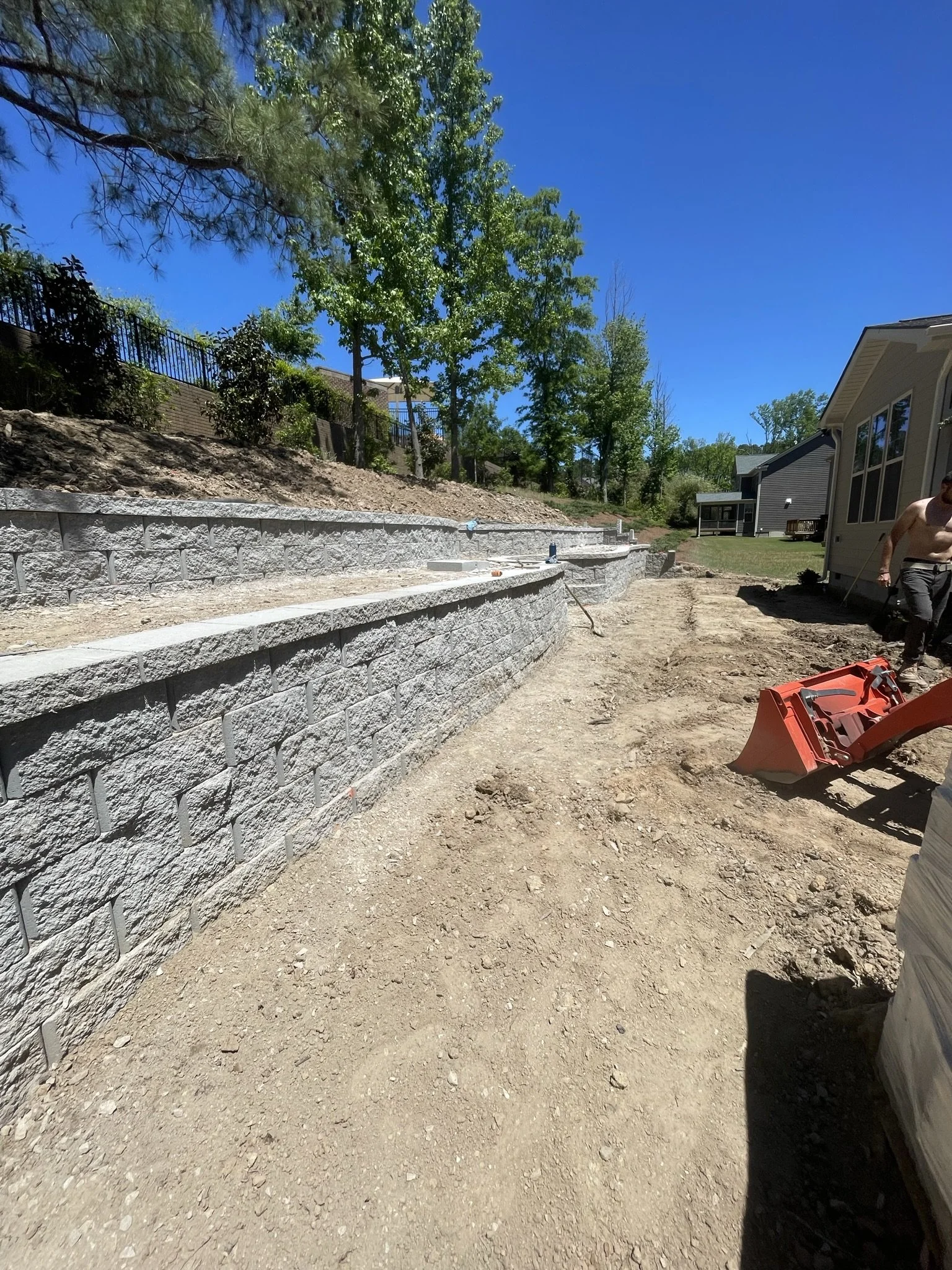 Our expert team of retaining wall contractors Raleigh, NC doesn’t just build barriers—we craft landscape features that add dimension and value to your property. From curved garden walls to multi-tiered retaining systems, we customize every detail to suit your terrain and vision.